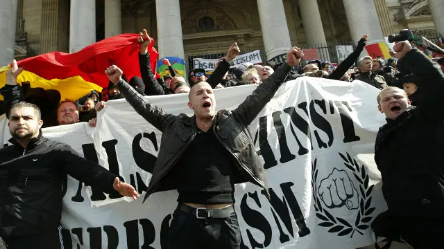 Brüksel'de Nazi selamı veren kalabalığa müdahale
