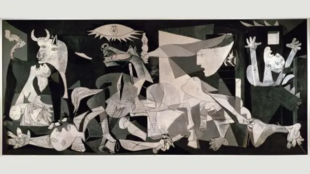 Bu, Pablo Picasso’nun anti-faşist Guernica tablosuydu. 3,4 metre genişlikteki tablo, 1937’de Bask bölgesindeki tarihi Guernica şehrinin bombalanmasını anlatıyordu. Orijinali Madrid’deki Prado Müzesi’nde sergilenen bu yağlıboya tablo, Vietnam savaşına karşı protestoların yoğunlaştığı 1960’larda ve 70’lerde New York’ta sergilenmişti. Birçok insan onu ABD’nin saldırgan dış politikasına karşı bir simge olarak görüyordu.