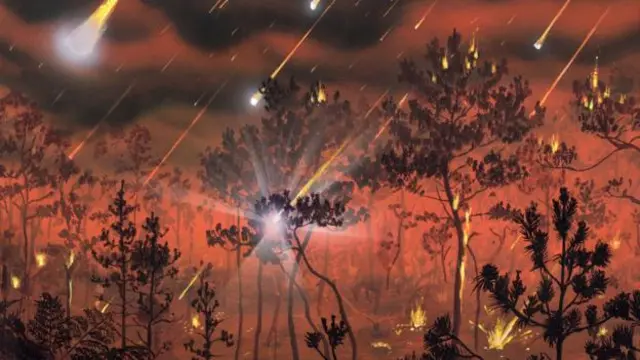 Soğuyup yoğunlaşan trilyonlarca minik cam parçası halinde hızla düşen bu parçalar atmosferi ısıtıp bazı yerlerde bitkilerin alev almasına neden oldu.
