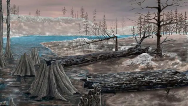 Çarpma öncesi fosil kalıntıları, ormanlara, nehir ve bataklıklara, eğreltiotlarına, sulak bitkilere ve çiçekli çalılara işaret ediyor.