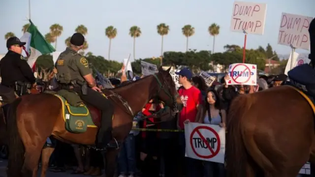 Kasım'daki başkanlık seçiminde seçilirse milyonlarca yasadışı göçmeni sınırdışı edeceğini söyleyen Trump'a, California'da özellikle Latin kökenli göçmenler karşı çıkıyor.