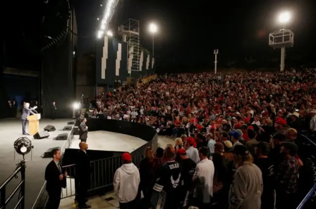 Trump'ın konuştuğu Pacific amfi tiyatrosu 18 bin kişi kapasitesini doldururken mitinge katılmak isteyen yüzlerce kişi kapıdan çevrildi.