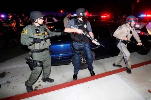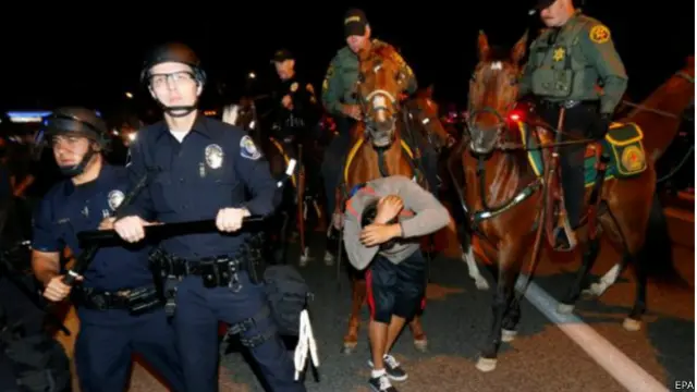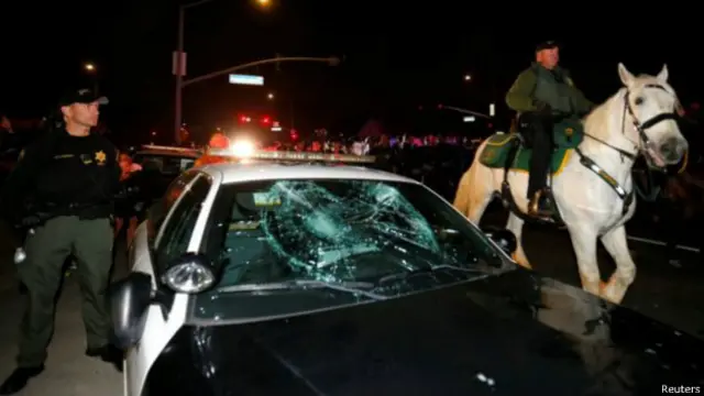 BBC'nin Los Angeles muhabiri James Cook bazı eylemcilerin polise taş attığının, bazılarının polis arabasına çıktığının ve camlarını parçaladığının görüldüğünü bildirdi.