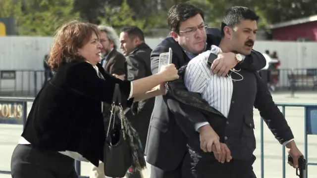 "Mahkeme heyeti ara verdi o sırada kahve içmeye çıktık. Saldırgan önümüze geçti, silahı doğrulttu. Can beyi hedef aldı. İki el ateş etti. İlk müdahaleyi Can beyin eşi yaptı. Daha sonra ben silah tutan bileğini kavrayarak müdahale ettim. O sırada polis geldi."
