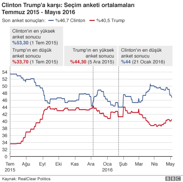Trump, eski Dışişleri Bakanı Clinton için öngörülemez bir rakip olacak. Cumhuriyetçilerin ön seçimlerinde görüldüğü gibi Trump'ın hiçbir kırmızı çizgisi yok. Rakiplere karşı her türlü saldırı da meşru.