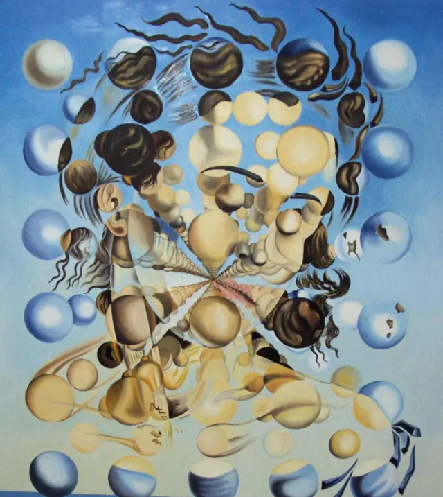 İlk bakışta seyirciye doğru gelen sayısız rengarenk atomlar görürsünüz. Sanki su üzerindeki bir nükleer patlama sonucu havada asılı kalmışlardır. Resimden uzaklaştığınızda ise bu kürelerin Rönesans madonnalarını çağrıştıran bir kadın büstü oluşturduğunu görürsünüz.