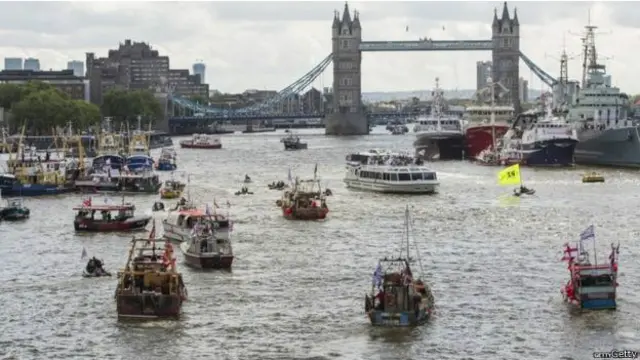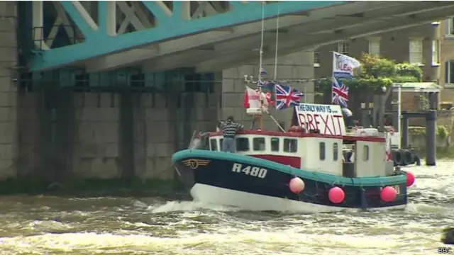 İngiltere'de AB referandumunda karşıt cepheler balıkçı tekneleriyle Thames Nehri'nde kampanya yaptı.