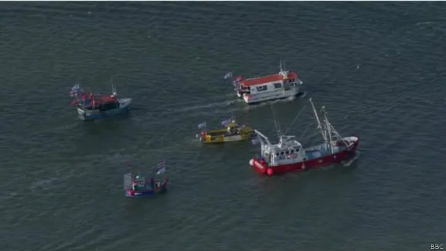 UKİP liderinin filosu Kent bölgesinin Ramsgate limanından cuma günü yola çıkmıştı. Filo Başbakan David Cameron'un parlamentoda yapacağı bugünkü konuşması için Westminister'a ulaştı.