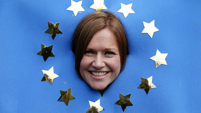 Gösteride "AB'yi seviyoruz" şeklinde pankartlar da taşındı.