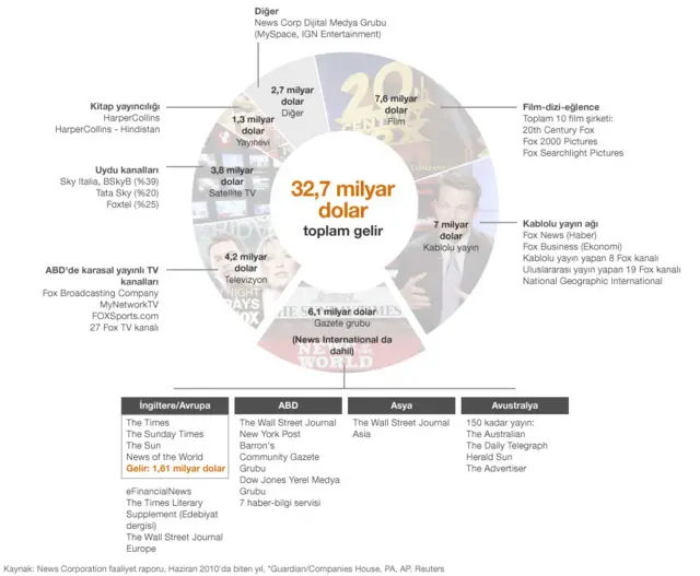 31 milyar doları bulan yıllık gelir ve 60 milyar doları bulan özsermayesi ile Rupert Murdoch'ın News Corp şirketi dünyanın en büyük medya holdinglerinden biri. 80 yaşındaki Avustralyalı Rupert Murdoch da, dünyanın en güçlü kişilerinden biri kabul ediliyor.