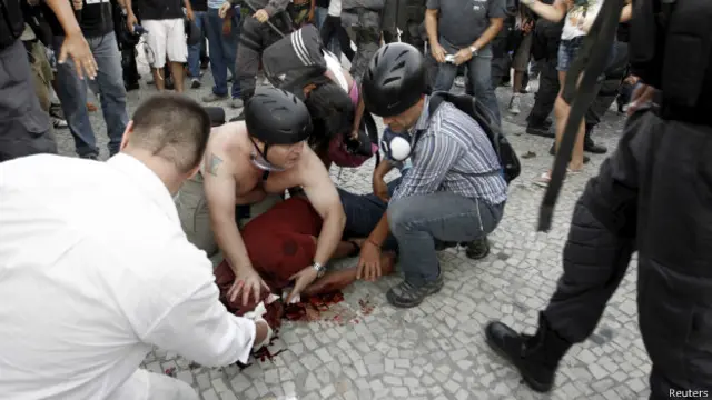 Brezilya'nın "Bandeirantes" medya kuruluşunda çalışan fotomuhabiri Santiago'nun, Rio'daki hükümet karşıtı gösterileri takip ettiği sırada başının hemen arkasında bir havai fişek benzeri cismin patlamasından sonra yere yığılmasının üzerinden bir hafta geçti.