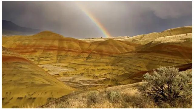 Oregon’un doğusundaki John Day Fosil Yatakları 56 bin km karelik bir alanı kaplıyor. Bu bölge 35 milyon yıl önce gerçekleşen yanardağ patlamalarının ve aşırı iklim koşullarının izlerini taşıyor. Zamanla bitki örtüsü yerini kurak araziye bırakmış. Kül, kil, mineraller ve çürüyen bitkiler toprağa karışarak her renkten iz bırakmış. Bu renkler havadaki nem oranına göre değişiyor ve ikindi vakti en güzel halini alıyor.