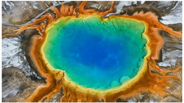 Yellowstone Milli Parkı’ndaki Grand Prismatic adını muhtemelen parlak renklerinden alıyor. 100 metreyi aşkın çapı ile burası ABD’nin en büyük kaplıcası. Göle rengini veren ise bu sıcak ortamda yaşayan bakteri ve mikroorganizmalar. Farklı ısı ortamları farklı renklere yol açıyor. Ortadaki en sıcak bölgenin mavi kalmasının nedeni ise bakteriden arınmış olması. Milli Park’ta her yıl milyonlarca ziyaretçinin akınına uğrayan başka kaplıcalar da var.
