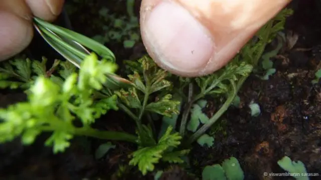 Bu minik eğreltiotu küçük bir maydanoz ağacına benziyor. Sadece Atlantik Okyanusu’nun güneyindeki bir yanardağ adasında yetişiyor. 50 yıldır nesli tükendi sanılıyordu, ama 2009’da botanikçiler tesadüfen yeniden rastladı. Uçurum kenarında, kuru ve rüzgarlı ortamda yetişen bitki koruma altına alındı ve sporlarını ürettiği sırada alınan küçük bir parça İngiltere’deki botanik bahçesine gönderilerek yetştirilmeye başlandı. Bu bitkinin bugünkü sayısının doğal ortamda 40 civarında olduğu biliniyor.