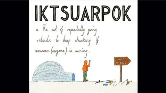 Eskimo dilinde Iktsuarpok kelimesi sabırsızlık ve beklenti arasında bir durumu, “ikide bir dışarı çıkıp biri geliyor mu diye bakma” halini ifade ediyor. Sanders, “Bu kelimeler hepimizin bildiği duygulara ve durumlara verilmiş adlar; yani Brezilyalı biri İsveçli birinden ya da bizden çok farklı değil aslında,” diyor.