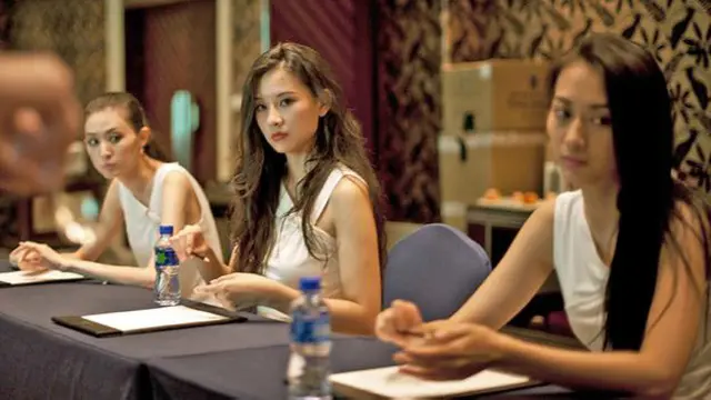 Dünya güzellik yarışmasına katılacaklar. Odanın duvarları ünlü bir markanın duvar kağıtlarıyla kaplı. Kadınlar ünlü bir marka porselen çay takımından çaylarını yudumluyor. Ellerinde defterleri, kamera karşısında ne yapmak ve yapmamak gerektiğine dair ders alıyorlar.