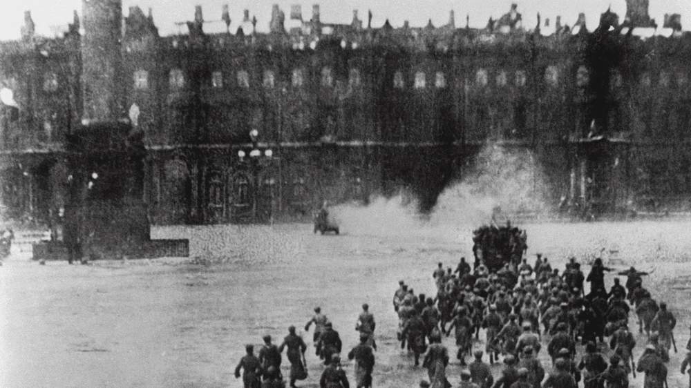Tarihler Ekim 1917'yi gösteriyordu. Kremlin'deki Spasskaya Kulesi'nin kapısının önünde, ağzında sigarası, elinde süngüsü takılı bir tüfekle genç bir asker volta atıyordu. Köşeyi dönünce karşınıza çıkan Nikolskaya Caddesi üzerinde bir grup devrimci, ellerindeki topu ittirerek, Muir ve Merrilees mağazalarının önünden geçiyordu. Kremlin'in kapıları kapandı ve burayı koruyan askerler de gözden kayboldu.