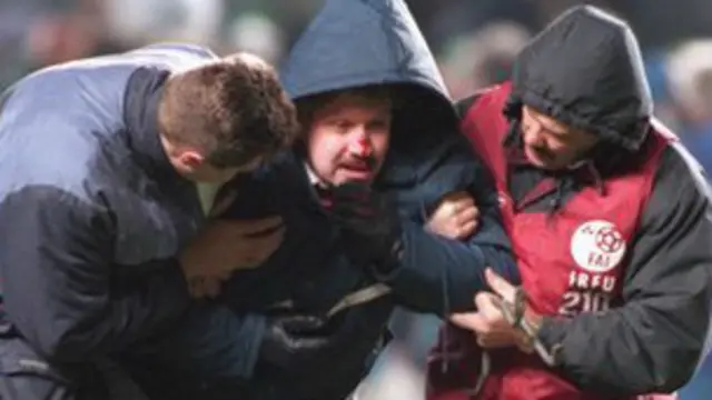 Seyirciler sahaya iniyordu, bazıları kanlı bir halde. Bu görüntü bazı futbolculara Hillsborough felaketini hatırlatmıştı.