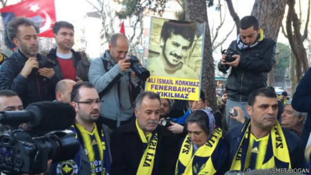Sonra Cadde'de yürüyenler parkta toplananlarla statta buluştu. Ali İsmail Korkmaz'ın ailesi 50 bin kişilik korodan dinledi oğullarına yakılan ağıdı.