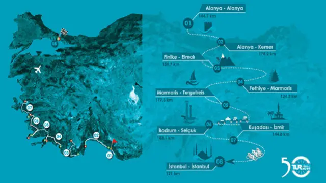Sekiz etaptan oluşan yarış Alanya’dan başlıyor, 1254 km. sonra 4 Mayıs Pazar günü İstanbul’da son buluyor. Yönetiminde Türkiye Bisiklet Federasyonu Başkanı Emin Müftüoğlu’nun da yer aldığı Dünya Bisiklet Federasyonu UCI’ın takviminde 2010 yılında en üst seviyenin bir altındaki 2.HC kategorisine yükselen yarışta, toplam 21 takımdan 168 bisikletçi pedal çevirecek. Takımların 8 tanesi, dünya bisikletinin birinci ligi olarak nitelendirilebilecek World Tour’da yarışan takımlar. Tek Türk takım ise Konya Torku Şekerspor.