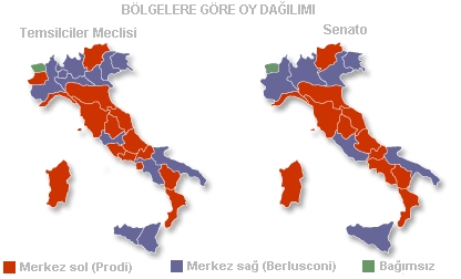 Berlusconi, İtalyan Corriere della Sera gazetesinde yayımlanan bir mektubunda, İtalya'nın bir kilitlenmeye gittiğini ve bunun sonucunda kazanan da kaybeden de olamayacağını savundu. Ancak resmî seçim sonuçları, tartışmalı oyların sayısının, sonuçları değiştirecek kadar fazla olmadığını gösteriyor. Berlusconi mektubunda, rakibi Romano Prodi'ye, ülkenin acil ekonomik, uluslararası ve kurumsal işleyişini sürdürebilmek için yeniden kısa dönemli bir koalisyon ortaklığı önerdi. Romano Prodi bu tür bir öneriyi daha önce reddetmişti. Berlusconi, seçimde hile yapıldığı iddiasını yineleyerek, oyların sayımı ardından ne sonuç çıkarsa çıksın, partisinin bu seçimin 'ahlak galibi' olduğunu savundu. Sol ittifak 630 üyeli parlamentonun alt kanadı Temsilciler Meclisi'nde 341, 315 üyeli Senato'daysa (İtalya'da ayrıca seçime katılmayan yedi kişi de daimi senatör unvanına sahip) 158 sandalye kazandı. Bu sonuçlar, İtalya Yüksek Mahkemesi tarafından onaylanmadan önce kesinleşemiyor. Yüksek Mahkeme'nin, seçim sonuçlarını önümüzdeki hafta onaylaması bekleniyor. BÖLGELERE GÖRE SEÇİM SONUÇLARI