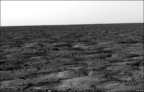 Mars'ın kuzey kutbuna yakın bir yere inen Phoenix'in gönderdiği fotoğraflarda taşlık bir bölge görülüyor.