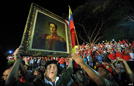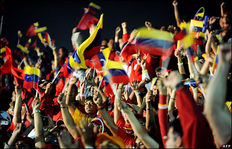 Venezuela lideri Chavez'in taraftarları referandum zaferini coşkuyla kutladı.