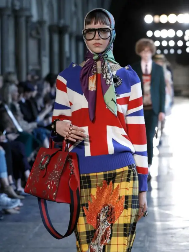 古驰设计师米歇尔则把新一季的口号叫做“向英格兰人致敬”。相比迪奥而言,米歇尔推出的新品更自由和富有文学气息。这其中有朋克风格的夹克衫、女中学生制服、还有英国公立中学典型的草帽。他说:“你可以朋克,但同时也可以斯文地喝一杯茶。”