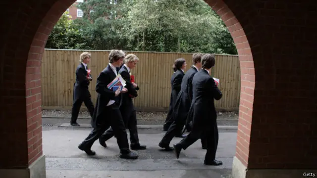 英国的校服有很多类型,几乎每个学校都有其独特设计的校服,有的学校还会鼓励学生自己设计,但基本上都是男生西装领带皮鞋,女生套裙丝袜,完全绅士淑女范儿。