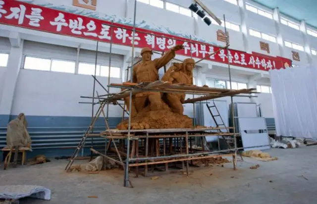 “万寿台创作社”始建于1959年,主要是为了满足朝鲜国内大规模的宣传需要。朝鲜军事游行中那些引人注目的巨大塑像、壁画、横幅,还有百姓日常生活中抬眼可见的大幅海报,都是由万寿台创作社的4000员工制作的。
