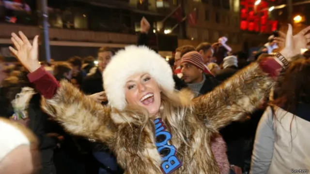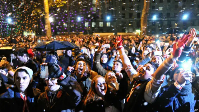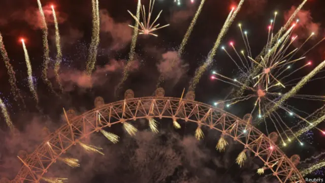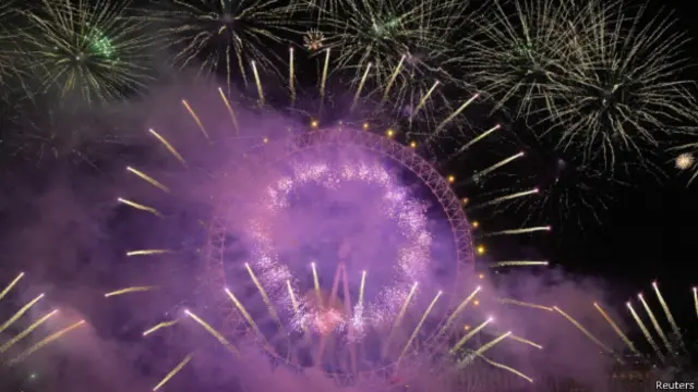 在2014年元旦到来之际,英国各地数十万民众举行派对,在音乐和满天的烟花中迎来了新年。