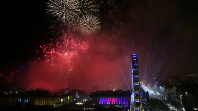 在除夕夜晚上8时14分,苏格兰多个城市同时燃放烟花,标志着苏格兰的迎新年活动开始。