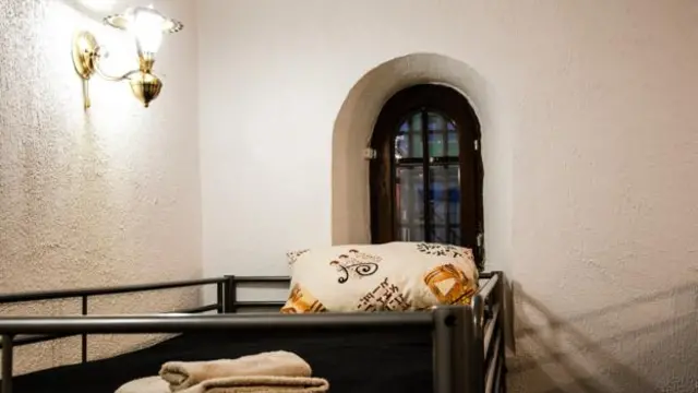 被称为“出汗箱”牢房是一些装修简陋的像宿舍一样的房间,里面放置了双层铁床,厚重的牢房大门,外面则挂着笨重的铁锁。这些牢房原本用于关押那些违反行为规定的囚犯。这些牢房没有灯;有一些甚至狭小到人在里面无法完全站直。