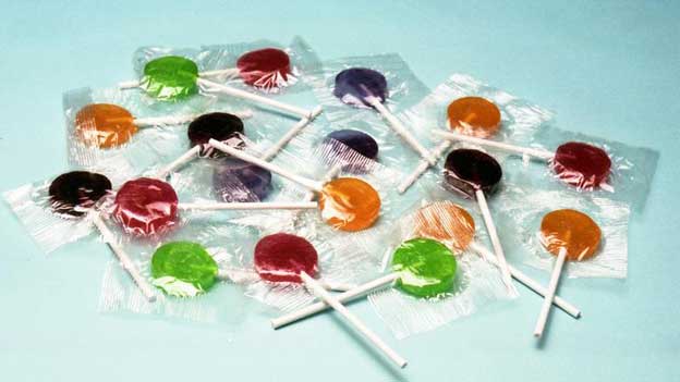 The word candy came into English from the French sucre candi 'crystallized sugar', which is thought to derive from Arabic sukkar 'sugar' and qandī 'candied' - in turn based on Sanskrit khaṇḍa 'piece' (of sugar).