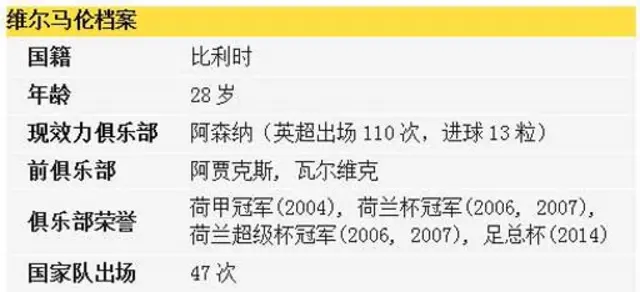 維爾馬倫在2009年從阿賈克斯以1000萬英鎊身價加盟,他一共代表俱樂部出場150次。