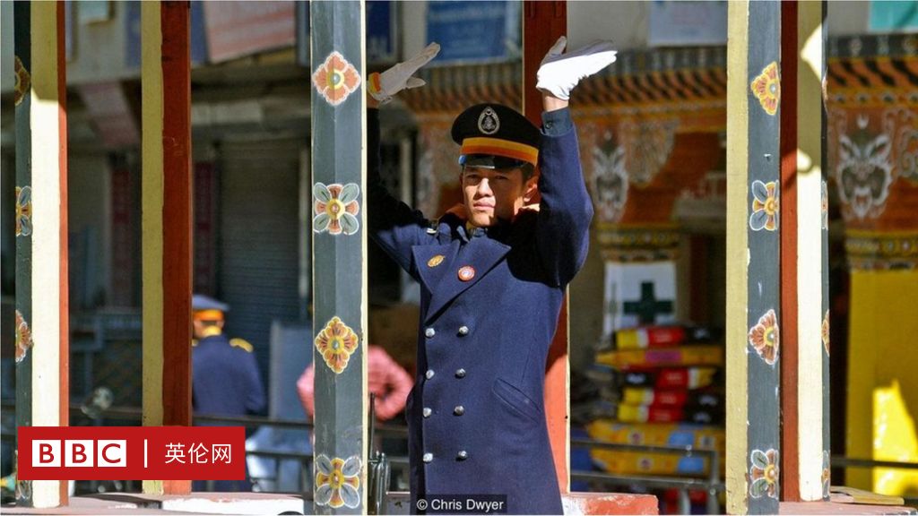 不丹面積和瑞士相仿,人口75萬,僅有7.5萬輛機動車,因此大多數道路都很空曠,也沒有多少交通信號裝置。首都廷布曾經安裝了全國唯一一座交通信號燈-但卻只存在了24小時而已。信號燈在安裝後很快被拆除,代之以一位現在很有名的交通警察指揮交通。他站在廷布一條過去十分冷清,現在卻車水馬龍的大街中央的交通亭裏,手戴一雙白手套,手勢動作極為誇張。