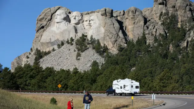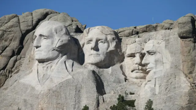 這座紀念碑位於南達科他州的黑山(Black Hills),它的建造者在一塊海拔高度5,725英尺(1,745米)的巨大花崗岩上雕刻了美國四位偉大總統的頭像,包括喬治·華盛頓(George Washington)、托馬斯·傑斐遜(Thomas Jefferson)、西奧多·羅斯福(Theodore Roosevelt)和亞伯拉罕·林肯(Abraham Lincoln)。這四個頭像的高度都達到60英尺(18.2米),分別在1927至1941年間雕刻完成。這些雕像的組成從來都不缺乏戲劇元素。