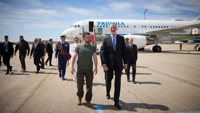 Про те, що в Іспанії надають велике значення підтримці України свідчить те, що в аеропорту Зеленського зустрів король Феліпе VI. Іспанське видання El Mundo відзначає, що це був незвичайний жест підтримки – протокол подібної зустрічі не вимагає, і іспанський король вдається до таких кроків дуже рідко – востаннє він зустрічав в аеропорту президента США Джо Байдена, коли той прибув до Мадриду на саміт НАТО в 2022 році.