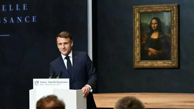 Про масштабні плани реконструкції президент Еммануель Макрон розповів журналістам і паризькому бомонду, стоячи саме під цим шедевром Леонардо.