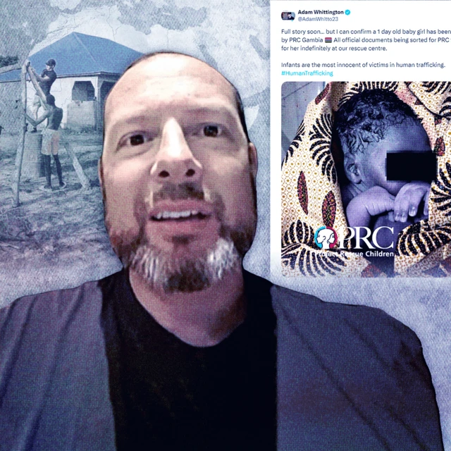 Наступний випадок обману, який ми викрили, розпочався у 2022 році, коли Віттінгтон заявив, що врятував новонароджену дитину від торговців людьми на жвавому ринку в Гамбії.