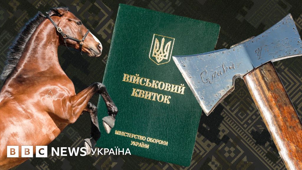На відеозапису видно, як двоє людей у військовому однострої, працівники ТЦК (територіальний центр комплектування, колишній військкомат), спілкуються з чоловіком, що сидить верхи на коні і тримає в руках сокиру.