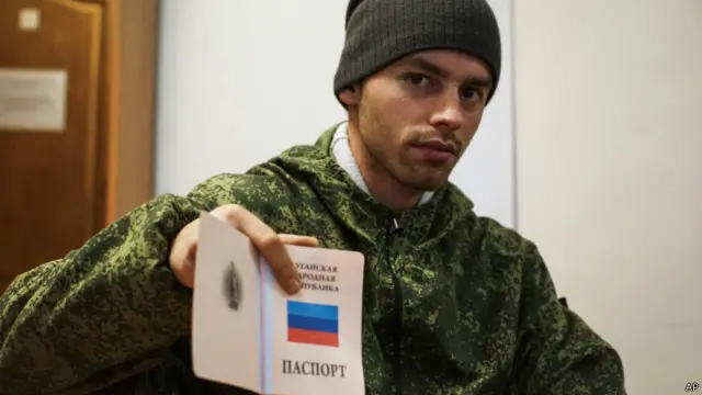 Луганськ зараз поєднує у собі суперечливі речі: таблички "кошу укроп" на шевронах "військових" і дверях маршруток, звичні продукти українських виробників на ятках ринків і супермаркетів, гонитву за українською пенсією, оформлення українських паспортів і свідоцтв про народження дітей і навіть обкладинки колишні "паспорт України" на документах у руках людей в "держбанках".