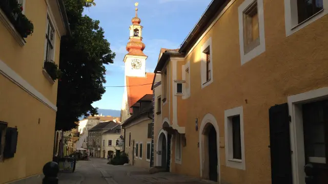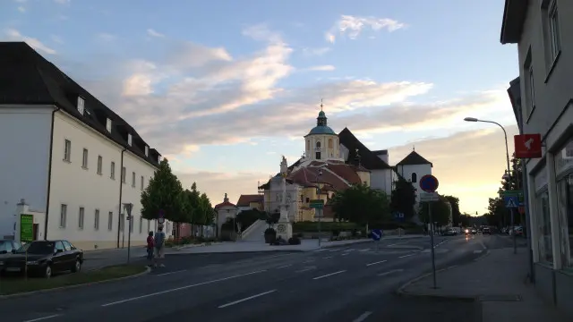 Це містечко розташоване за 14 кілометрів від столиці. Його вузенькі вулички впираються в пагорби, на яких буяє Віденський ліс.