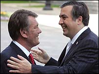 Грузинський президент Міхаїл Саакашвілі вважає, що новий альянс відображає нові інтереси країн-членів: "Те, що ми створили, це не просто міжнародна організація зі штаб-квартирою в Києві. Вона відображає нові реалії в наших країнах і нові інтереси, які з’явилися в наших країнах за останні кілька років. Я вважаю, що наші країни дуже швидко розвиваються попри всі перешкоди. Дуже важливо також, що в час, коли проти України, Грузії і Молдови запроваджено економічні санкції та ембарго, ми домовилися про створення зони вільної торгівлі між нашими чотирма країнами. Це дасть особливі результати і особливий зиск усім нашим країнам, громадянам, виробникам, експортерам та імпортерам цих країн". Президент Ющенко заявив, що Україна, передовсім, зацікавлена у нових нафтотранспортних проектах, зокрема, у транспортуванні нафти з Азербайджану та Казахстану до великих споживачів в ЄС. Тим часом, президент Молдови Владімір Воронін наголосив, що парламент Молдови розгляне питання, винесена депутатами від опозиції, про вихід Молдови з СНД: "Ми не хочемо проти будь-кого спрямовувати діяльність цієї організації. Вона нам потрібна для вирішення питань, які є у нас, в наших країнах. У відповідності зі статутом, ця організація відкрита для членства в ній інших країн". Раніше президент Ющенко наголошував, що не вважає ГУАМ противагою СНД. | Також на цю тему ГУАМ прагне зменшити енергетичну залежність від Росії23 травня, 2006 | УКРАЇНА Учасники саміту ГУАМ прибули до Києва22 травня, 2006 | УКРАЇНА ГУАМ стане міжнародною організацією24 лютого, 2006 | УКРАЇНА Член Пори каже, що затримання в Баку було політичним19 вересня, 2005 | УКРАЇНА Ющенко: Україна може завалити вступ до СОТ20 травня, 2005 | УКРАЇНА | ||||||||||||||||||||||||||||||||||||||||||||||||||||||||||||||||||||||||||||||||||