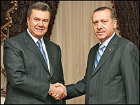 Сьогодні Віктор Янукович у Туреччині підписав міждержавну угоду про співпрацю в оборонно-промисловій галузі. Робоча урядова група залишилася у Анкарі для підписання решти запланованих документів. В Туреччині залишаються міністр культури та туризму Юрій Богуцький, міністр економіки Володимир Макуха, міністр транспорту та зв'язку Микола Рудьковський, голова Верховної Ради АРК Анатолій Гриценко, народні депутати Мустафа Джемілєв і Рефат Чубаров, заступник міністра закордонних справ Володимир Хандогій, заступник міністра палива та енергетики Сергій Тітенко, а також перший заступник Держкомзему Микола Калюжний. Серед тем переговорів – енергетична безпека на тлі газового протистояння між Росією і європейськими країнами. Ще раніше Україна і Туреччина разом з ЄС і низкою інших держав узгодили спільну енергетичну стратегію, підписавши дорожню карту з питань енергетичної співпраці. Київ також зацікавлений в участі в газотранспортному проекті Набуко, який має забезпечити поставки газу з Центральної Азії через Туреччину до Австрії. Україна розраховує на поглиблення співпраці в оборонно-промисловій сфері і планує підписати під час нинішнього візиту відповідну угоду з Анкарою, а також протокол про обмін інформацією в рамках операції Чорноморська гармонія. Анкара і Київ неодноразово висловлювалися за посилення взаємодії для збалансування російського впливу в чорноморському регіоні. | Також на цю тему Кушнарьов помер від поранень на полюванні17 січня, 2007 | УКРАЇНА Янукович у Туреччині говоритиме про енергетику17 січня, 2007 | УКРАЇНА Бізнес: Україна хоче будувати газопровід Nabucco15 січня 2007 | ДОКЛАДНО Янукович пропонує взятися за Закон про президента15 січня, 2007 | УКРАЇНА Преса: Янукович хоче поставити президента на місце16 січня 2007 | ПРЕСА Гардіан: у Ющенка відібрали владу16 січня 2007 | ПРЕСА Басеску: Румунія має бути містком до ЄС15 січня, 2007 | УКРАЇНА | ||||||||||||||||||||||||||||||||||||||||||||||||||||||||||||||||||||||||||||||||||