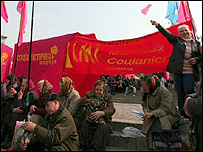 Тим часом Спікер парламенту Олександр Мороз закликає політиків шукати конституційний вихід із політичної кризи та не допустити залучення до того конфлікту вулиці. Промовляючи на пленарному засіданні Верховної Ради, пан Мороз наголосив, що вивести людей на вулиці набагато простіше, ніж забрати їх звідти. Київська міліція не виключає, що велелюдні пікетування та мітинги можуть бути використані для провокування безладів та масових порушень громадського порядку. | Також на цю тему Коаліційний майдан: концерт від КПУ на Великдень09 квітня, 2007 | УКРАЇНА Коаліційна більшість звернулася до народу і світу09 квітня, 2007 | УКРАЇНА Коаліція відновлює демонстрації у Києві09 квітня, 2007 | УКРАЇНА Ющенко: повороту назад не буде08 квітня, 2007 | УКРАЇНА Регіони хотіли не дати опозиції ставити сцену07 квітня, 2007 | УКРАЇНА Коаліційний майдан: Великодні свята у наметах06 квітня, 2007 | УКРАЇНА Коаліційний майдан: день другий пройшов у співах04 квітня, 2007 | УКРАЇНА | ||||||||||||||||||||||||||||||||||||||||||||||||||||||||||||||||||||||||||||||||||