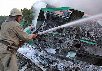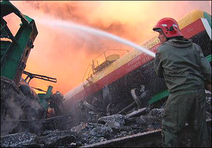 Міністр транспорту Микола Рудьковський, який прибув на місце події, просить не порівнювати аварію з Чорнобилем. Фото Укрінформу | |||||||||||||||||||||||||||||||||||||||||||||||||||||||||||||||||||||||||||||||||||