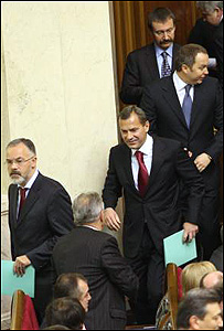 Тим часом, як повідомляють, голова партії Регонів Борис Колесніков заявив, що Партія регіонів не будуть голосувати за обрання голови парламенту у разі як регіонали не увійдуть до, як він висловився, об’єднаної коаліції. На церемонії урочистого відкриття першого засідання парламенту були присутні колишні президенти України Леонід Кравчук і Леонід Кучма. Очікується, що до парламенту має звернутися президент Ющенко. Секретар РНБО України, член блоку НУНС Іван Плющ заявив, що він вирішить питання про підписання коаліційної угоди з БЮТ після створення фракцій. А також , коли ознайомиться з документом. Напередодні президент Ющенко рекомендував всім трьом членам НУНС, які не підписали коаліційну Угоду зробити цей крок. | Також на цю тему Депутати нової Верховної Ради склали присягу 23 листопада, 2007 | УКРАЇНА День свободи в Україні святкують без мітингів22 листопада, 2007 | УКРАЇНА Від Ющенка очікують ім'я спікера21 листопада, 2007 | УКРАЇНА | ||||||||||||||||||||||||||||||||||||||||||||||||||||||||||||||||||||||||||||||||||