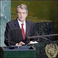 За оцінкою Глави держави, «рішення Палати представників Конгресу США також свідчить про розуміння нашими закордонними партнерами значення і масштабу тої гуманітарної катастрофи, яку пережила українська нація на початку 1930-х років». Автором та ініціатором резолюції виступив співголова українського кокусу, конгресмен Сандер Лєвін. Крім інших 29 коспонсорів, її також підтримали інші співголови українського кокусу, конгресмен Марсі Каптур та конгресмени Джим Герлах і Роско Барлет, а також голова Комітету у закордонних справах Палати представників Говард Берман. Президент Ющенко виступив на Генеральній Асамблеї ООН і закликав світову спільноту вшанувати пам'ять жертв голодомору та інших злочинів тоталітарного режиму: "Терор голодом в Україні мав цілеспрямований характер геноциду, що супроводжувався тотальним знищенням національної еліти, громадського проводу і духовенства. Метою було упокорення багатомільйонного народу, який, за визнанням режиму, неможливо було увесь вивести до Сибіру. Важливо, що наші дії стали причиною для пошуків правди в інших країнах колишнього Радянського Союзу. Ми поділяємо біль всіх постраждалих народів - росіян, білорусів, казахів і десятків інших націй. Просимо спільно вшанувати кожну національну трагедію і не допустити новітніх спроб героїзації диктатури Сталіна та його режиму. Ми маємо безцінні приклади порозуміння з Польщею, Угорщиною та іншими країнами. Чесна і щира пам'ять про минуле не розколола, а, як раз, об'єднала нас. Ми прагнемо, щоб пам'ять про жертви Голодомору та інших злочинів тоталітарних режимів вберегла світ від повторення пережитих катастроф." | Також на цю тему Ющенко: терор голодом в Україні був геноцидом 24 вересня, 2008 | УКРАЇНА Світ все більше чує про голодомор. Що вдома?24 вересня, 2008 | УКРАЇНА Ющенко промовлятиме в ООН про Голодомор22 вересня 2008 | ДОКЛАДНО Світовим лідерам в ООН є про що говорити22 вересня 2008 | ДОКЛАДНО Інші сайти Бі-Бі-Сі не несе відповідальності за зміст інших сторінок на інтернеті | ||||||||||||||||||||||||||||||||||||||||||||||||||||||||||||||||||||||||||||||||||