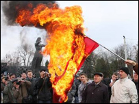 Соціологи кажуть, що на тлі зростання цін підтримка комуністів, які на минулих виборах здобули близько 5-ти% голосів, зараз дещо зросла. У свою чергу представники правил сил, переважно активісти Свободи та Конгресу українських націоналістів, провели мало чисельні антикомуністичні мітинги. У Львові активісти ВО "Свободa" спалили червону символіку комуністів і вимагали Нюрнберзького процесу над комуністичними злочинцями. Міліція утримала конфліктуючих демонстрантів від сутичок. | Також на цю тему Комуністична партія каже, що йтиме на вибори самостійно24 жовтня 2008 | ДОКЛАДНО Київ: Росія заважає розгляду Голодомору в ООН24 жовтня, 2008 | УКРАЇНА Лідер комуністів хоче організувати соціальні протести19 жовтня, 2008 | УКРАЇНА Латвія рахує збитки від радянської влади16 жовтня 2008 | ДОКЛАДНО | ||||||||||||||||||||||||||||||||||||||||||||||||||||||||||||||||||||||||||||||||||